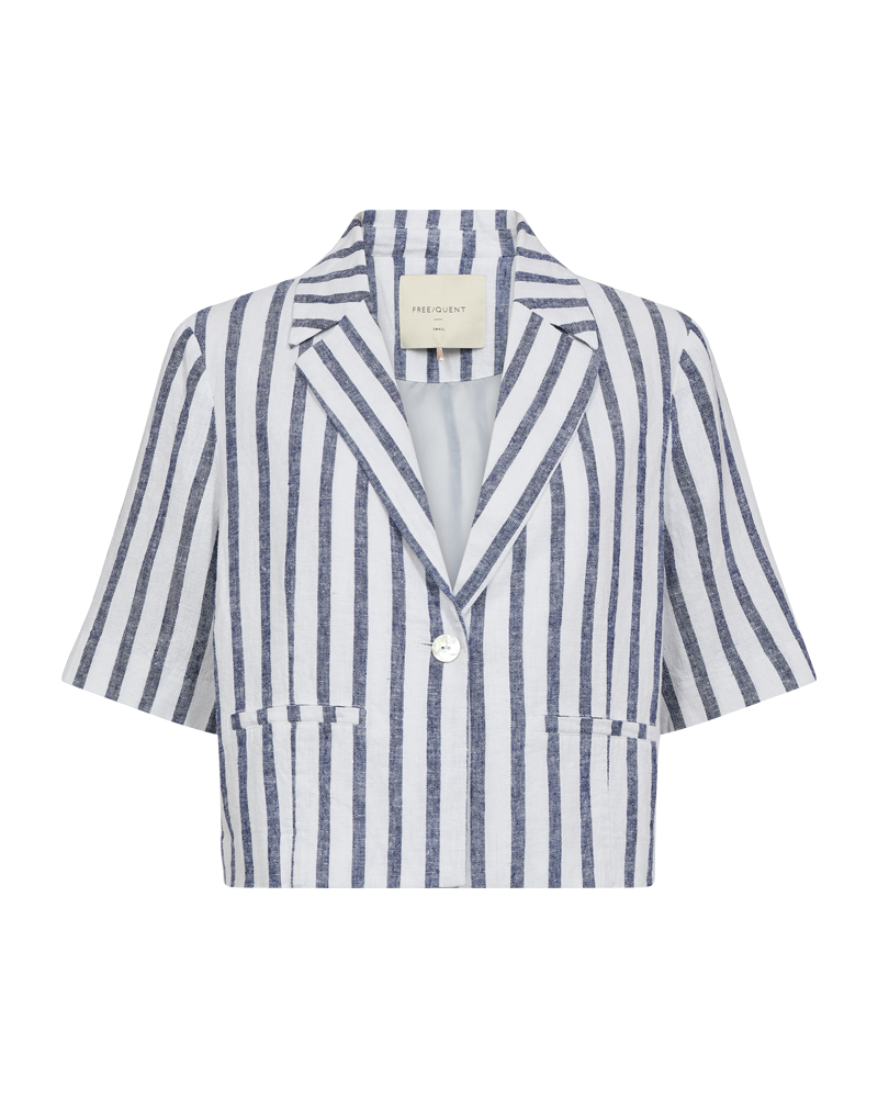 Freequent Lavisco Jakke Stribet Brilliant Hvid w Deep Ultrama Blå -
