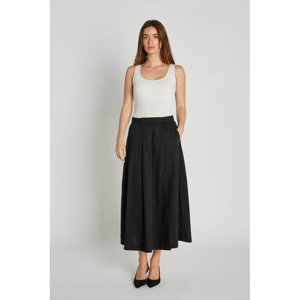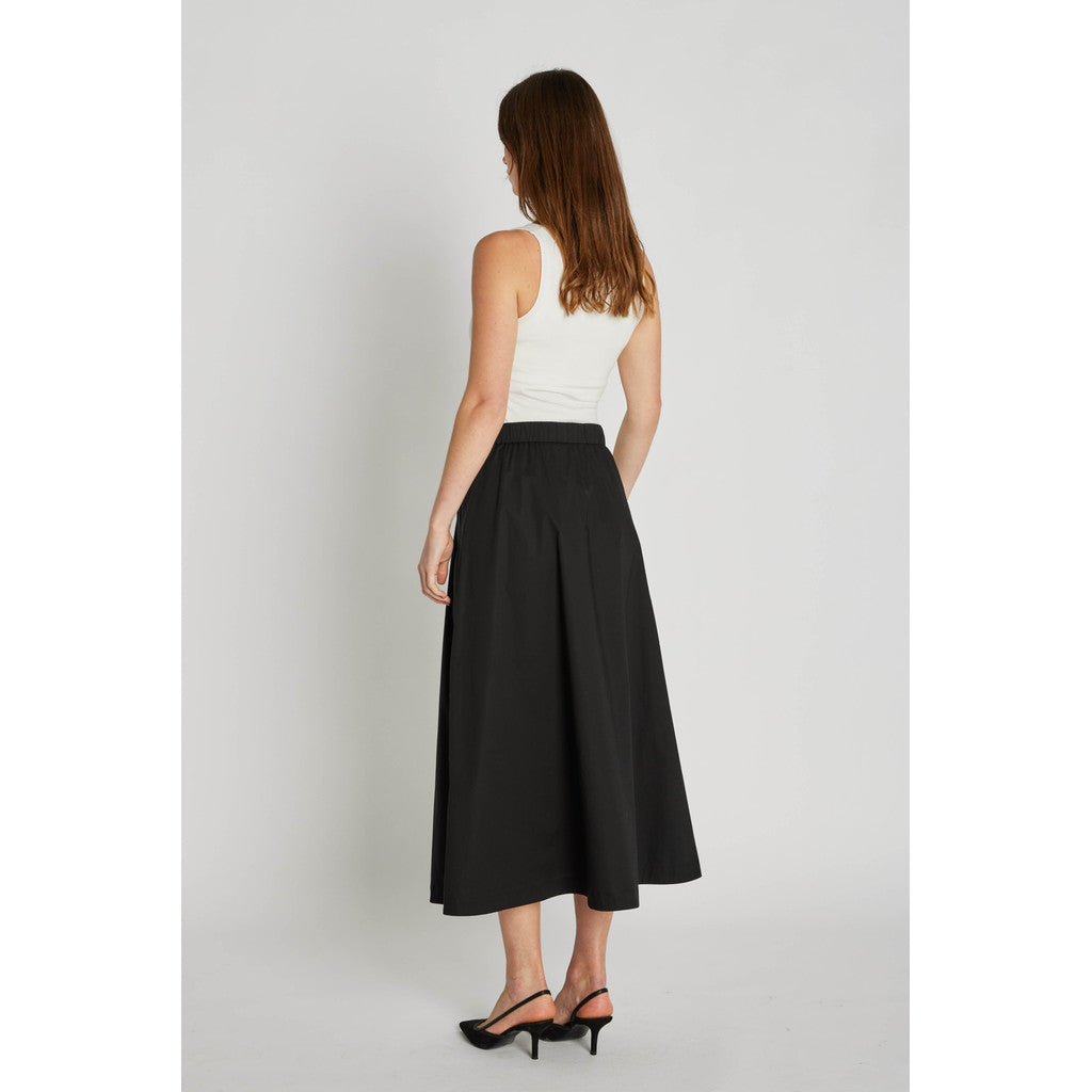 En flot, klassisk A-formet nederdel i sort fra mærket PBO. Kadina har elastik i taljen og midi-længde. En perfekt style til både afslappede og elegante looks.
